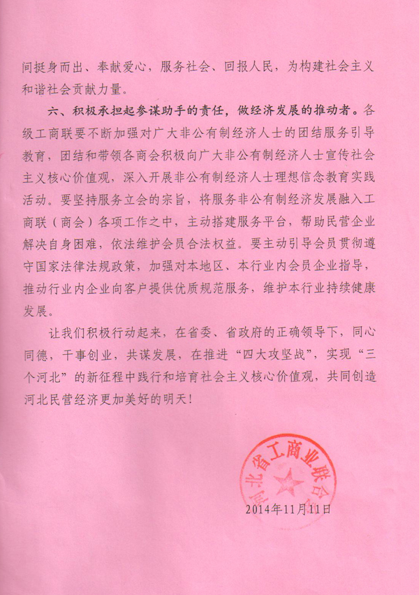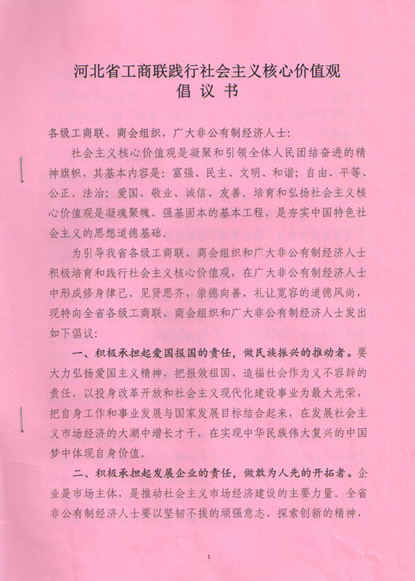 河北省工商聯(lián)踐行社會(huì)主義核心價(jià)值觀倡議書(shū)