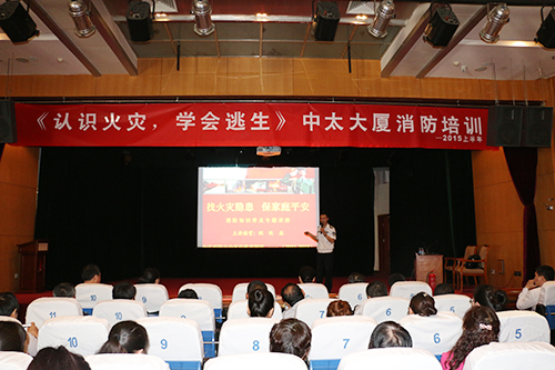 5月15日上午,中太大廈2015年上半年消防培訓(xùn)在二樓報(bào)告廳舉行,邀請(qǐng)石家莊市冀消安防火教育中心宣教處教員程俊磊老師,為大家?guī)砹艘粓?chǎng)以“找火災(zāi)隱患保家庭安全”為主題的消防知識(shí)普及專題講座。