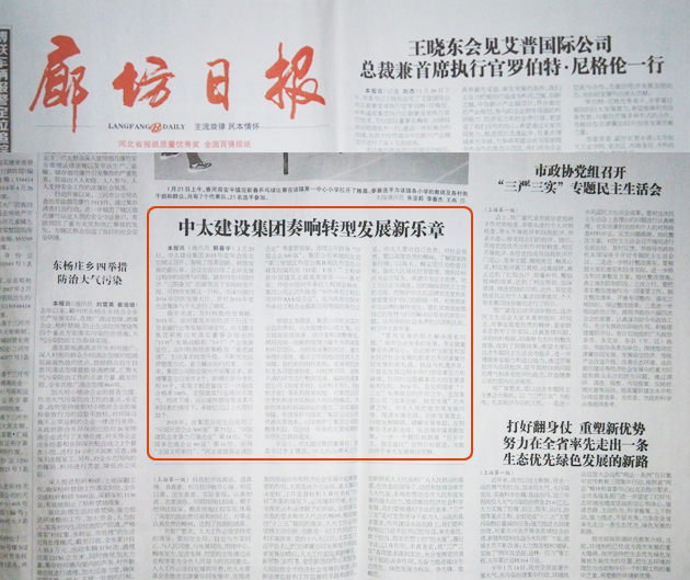 廊坊日報1月29日報道了中太建設集團奏響轉型發(fā)展新樂章
