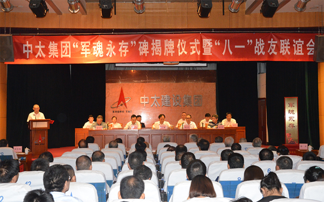 2018年7月26日上午,久違而清脆的集合號在中太大廈二樓報告廳久久回蕩,拉開了中太集團“軍魂永存”碑揭牌儀式暨慶“八一”戰(zhàn)友聯(lián)誼會的序幕。中太集團在廊各單位部分員工、機關(guān)各部門的全體員工和軍轉(zhuǎn)工在崗與退休戰(zhàn)友代表共180多人,著裝整齊,嚴陣以待,期待這一莊嚴時刻的到來。