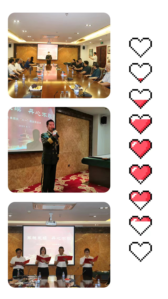 集團領(lǐng)導(dǎo)代表集團公司向在座的各位老首長、老戰(zhàn)友,以及集團公司未參加今天活動的全體老戰(zhàn)友致以誠摯的問候和節(jié)日的美好祝福!集團領(lǐng)導(dǎo)指出,召開戰(zhàn)友聯(lián)誼座談會,是中太集體轉(zhuǎn)業(yè)以來一直延續(xù)到現(xiàn)在的最盛大的活動之一,既是為了紀(jì)念建軍這個光輝節(jié)日,也是借此機會與老戰(zhàn)友們見見面、敘敘舊。