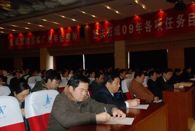 中太大廈二樓報告廳,鮮花吐艷,綠葉蔥蔥。“全面貫徹落實廣州年會精神,堅決完成09年任務(wù)目標”的大幅標語格外醒目。
