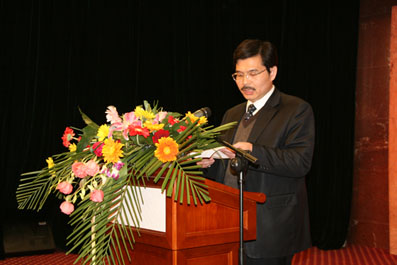 集團黨委副書記、工會主席鐘崇鶴在報告會上致辭