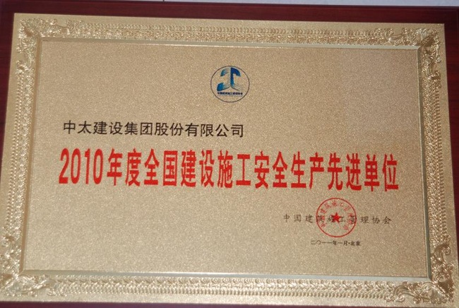 集團(tuán)公司榮獲“2010年度全國建設(shè)施工安全生產(chǎn)先進(jìn)單位”榮譽(yù)