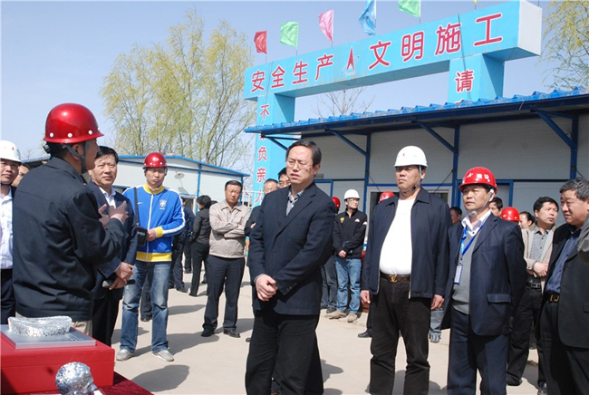 集團(tuán)總裁張明禮(前右3)陪同趙世洪書記(前右4)在現(xiàn)場(chǎng)考察
