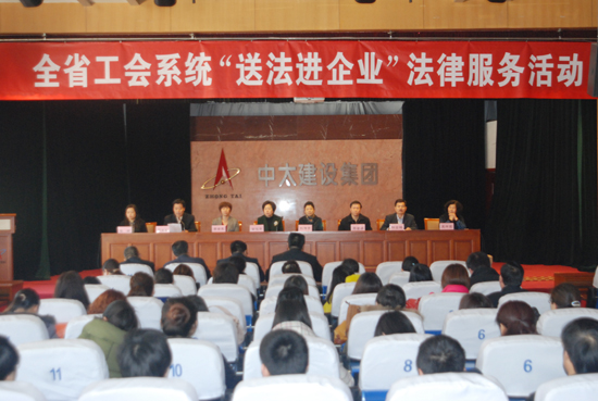 在深入開展黨的群眾路線教育實踐活動中,為更好地服務企業(yè)與職工,建立完善和諧的勞動關系,營造企業(yè)以法治企、健康發(fā)展的良好氛圍。3月20日上午,由河北省政協(xié)常委、省總工會巡視員郭俊苓帶隊的省工會系統(tǒng)“送法進企業(yè)”法律服務工作組(省總工會法律部部長劉偉青、省總工會法律部副部長馬金占一行3人),在市總工會黨組成員、副主席田會蘭的陪同下,走進中太建設集團,為集團公司員工帶來了法律服務講座,并現(xiàn)場贈發(fā)了相關書籍。市總工會副調研員、辦公室主任李寶秋主持講座。