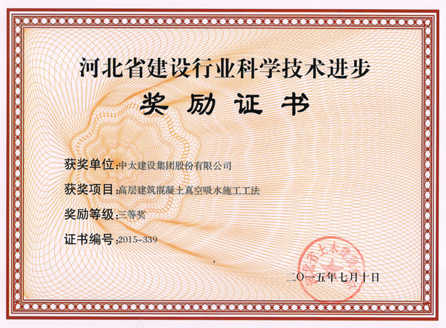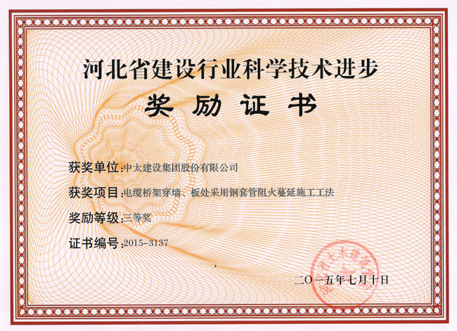 2015年河北省建設行業科學技術進步獎勵證書匯總