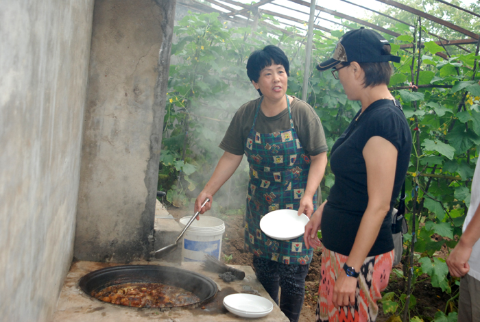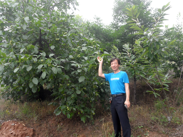據第八工程局工作人員介紹,此采摘處約有20畝果樹林地。山上種植著杏兒、桃兒和核桃。山下院內菜園里,種植著施用農家肥的各類時蔬和植物。以蟲兒、草兒為食、自由散養的雞鴨悠閑漫步在山林中,好一派恬靜如詩、優美如畫的田園風光。