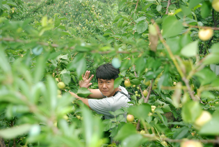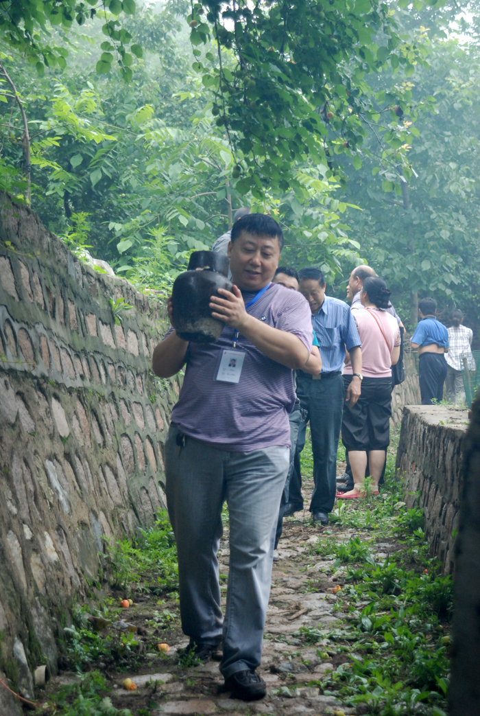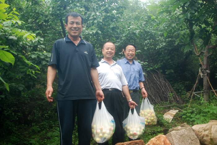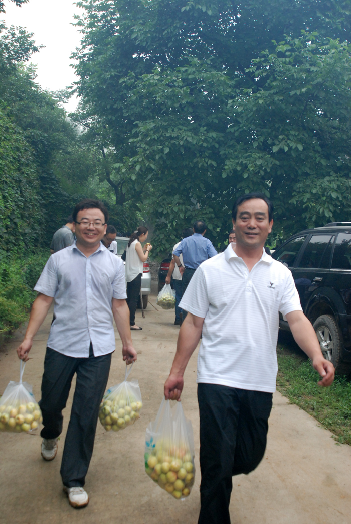 從京承高速公路下道,兩輛大巴車沿著崎嶇山路緩慢行駛。山道兩側灌木郁郁蔥蔥,置身于這天然氧吧,清新的空氣順暢地能讓人一下子呼吸到了丹田而心神氣爽。一路上,路邊采摘的果園比比皆是?諝庵心枪麑嵣l出的清香,直入心脾,令人口舌生津。