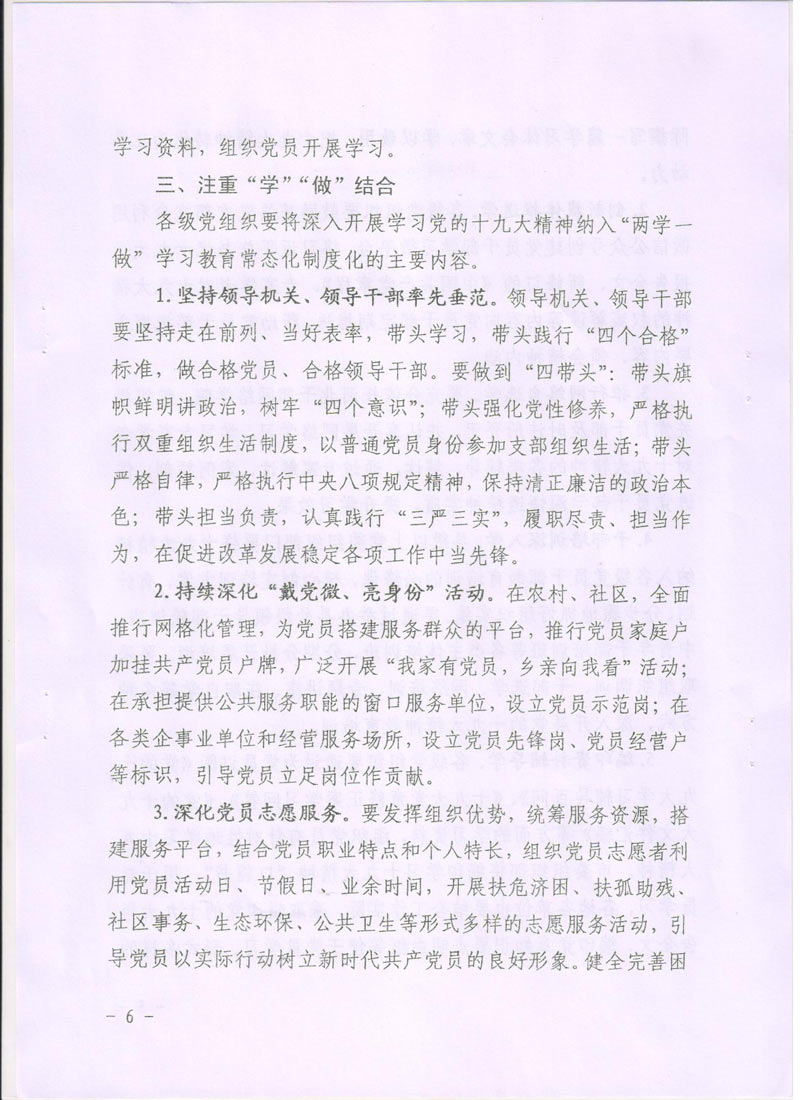 現將中共廊坊市委組織部《關于在推進“兩學一做”學習教育常態(tài)化制度化中深入開展學習貫徹黨的十九大精神的通知》轉發(fā)給你們。請認真按照通知要求,緊密聯(lián)系本單位實際,把深入開展學習貫徹十九大精神納入“兩學一做”學習教育常態(tài)化制度化,把十九大精神學深學透,全面把握十九大精神實質。