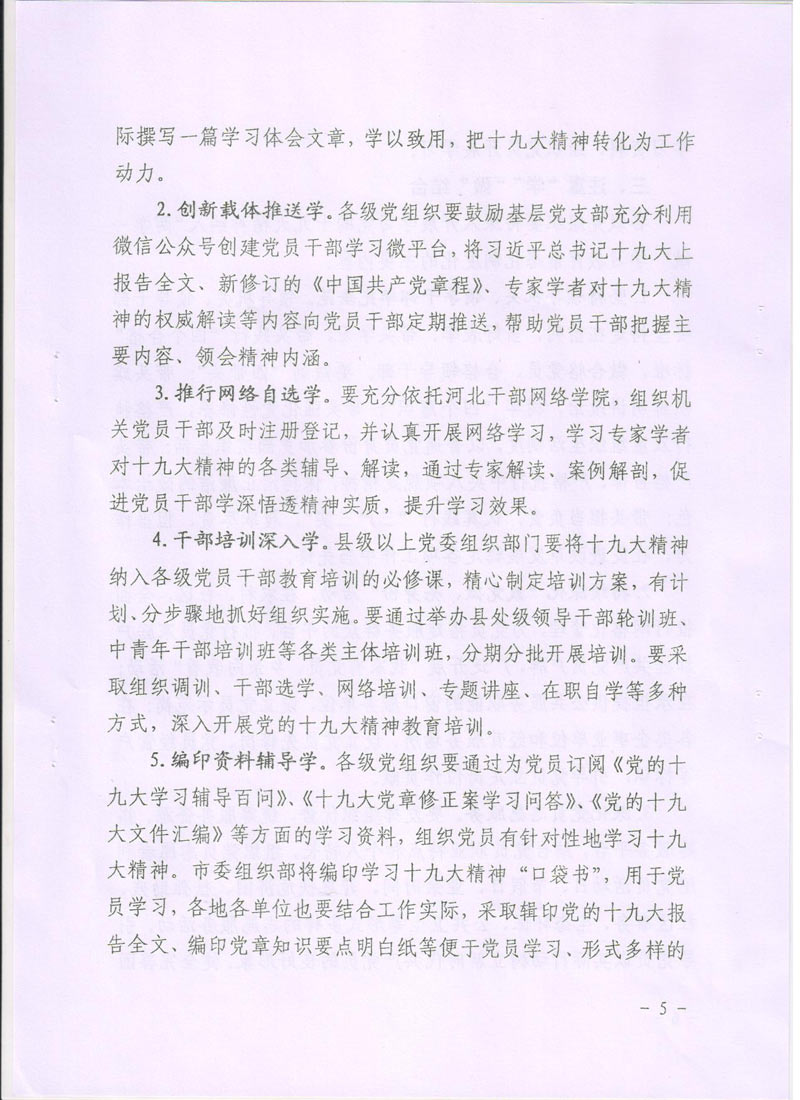 [2017]24號關于轉發(fā)《中共廊坊市委組織部<關于在推進“兩學一做”學習教育常態(tài)化制度化中深入開展學習貫徹黨的十九大精神的通知>》的通知
